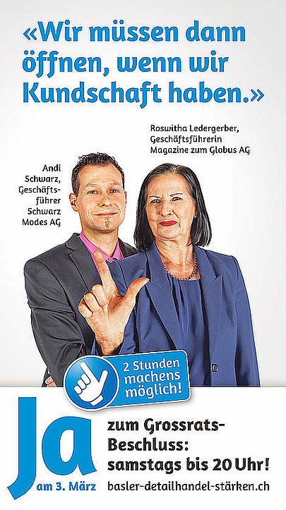 Die Basler Stimmbevölkerung hat am Sonntag, 3. März 2013, die Chance, den Basler Detailhandel nachhaltig zu stärken. Für ein Ja zum Grossrats-Beschluss für zwei zusätzliche Verkaufsstunden am Samstag gibt es viele gute Gründe.