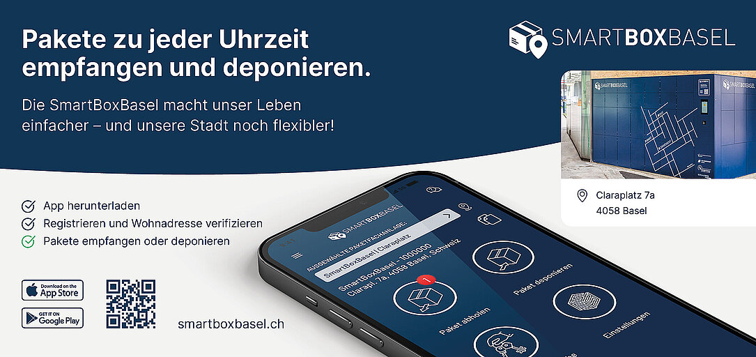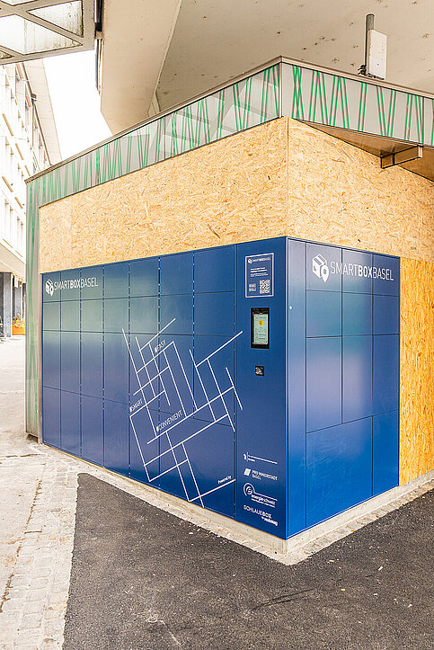 Mit der SmartBoxBasel ist seit März 2021 eine neue, anbieterneutrale Paketanlage in Betrieb. Diese erlaubt den Baslerinnen und Baslern als flexible, zeitsparende und kostenlose Lösung mittels App zu jeder Uhrzeit Pakete zu empfangen und zu deponieren.