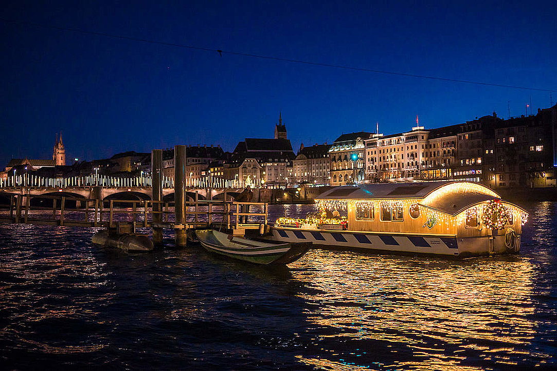 Pro Innerstadt Basel lädt Sie am 13./14.12 und 20./21.12. zu Gratisfahrten auf dem Rhein mit Sicht auf das weihnachtliche Basel ein.