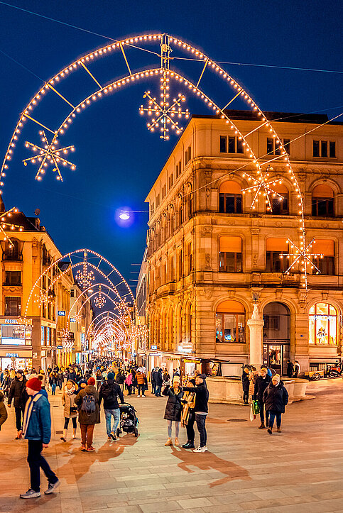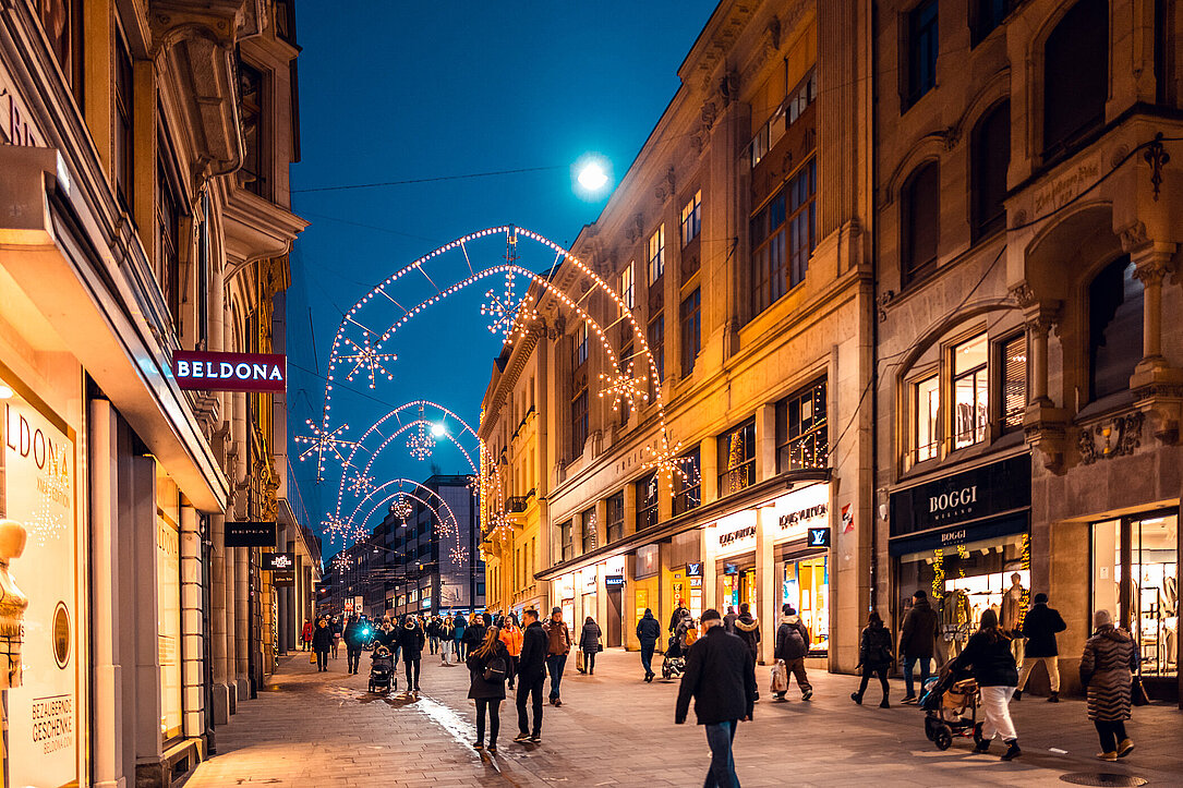 In dem Moment, in dem in der Freien Strasse der Himmel aus goldenen Lichtern erstrahlt, verändert sich Basel. Die Menschen heben den Blick, halten inne, staunen. Es ist nicht laut, nicht übertrieben – sondern beinahe poetisch. Die Weihnachtsbeleuchtung in der Freien Strasse und angrenzenden Gassen ist mehr als Dekoration. Sie ist ein Versprechen: auf Licht im Dunkeln, auf Zusammenhalt und auf diese besondere Stimmung, die nur der Advent kennt.