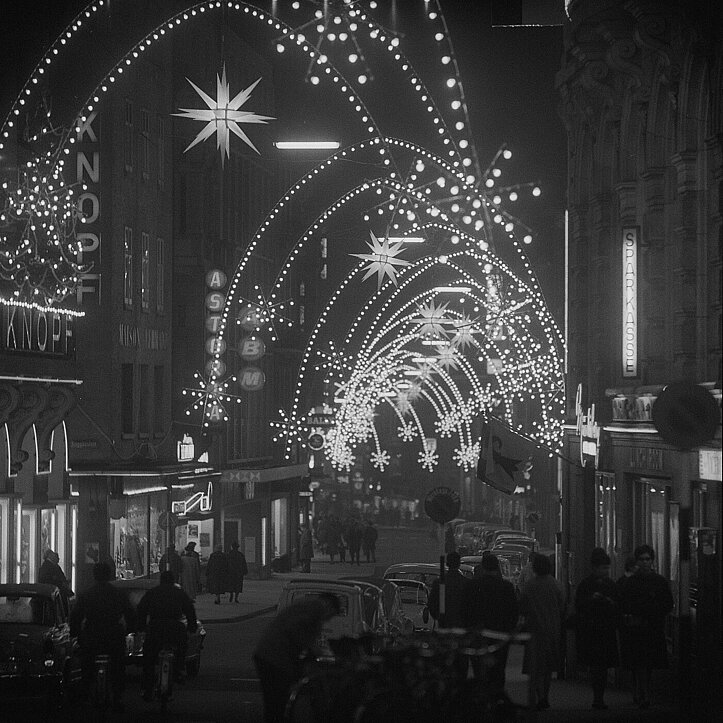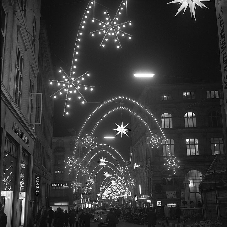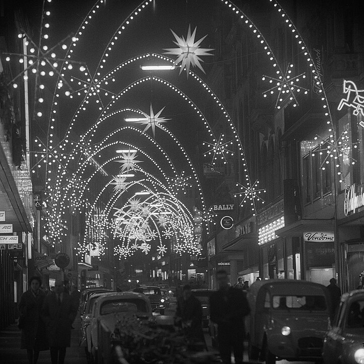 Es war Ende November 1963, als die Freie Strasse erstmals im festlichen Licht erstrahlte. Damals staunten die Baslerinnen und Basler über mehr als 6'000 funkelnde Glühbirnen – ein symbolischer Moment, der die Stadt in der Adventszeit für immer prägen sollte. Seither gehört das Lichterbogen-Ensemble zu Basel wie der Duft von heissen Marroni und der Klang des Weihnachtsspaziergangs über Pflastersteine. Mit den Jahren hat sich vieles verändert – doch die Emotion ist geblieben. Heute strahlen fast 9'000 energiesparende LED-Lämpchen über der Freien Strasse, elegant gespannt zwischen den Fassaden, die sich im Lichtspiel spiegeln. Wenn die Bögen im November montiert werden und das erste Glimmen durch die Gasse zieht, beginnt für viele die schönste Zeit des Jahres.