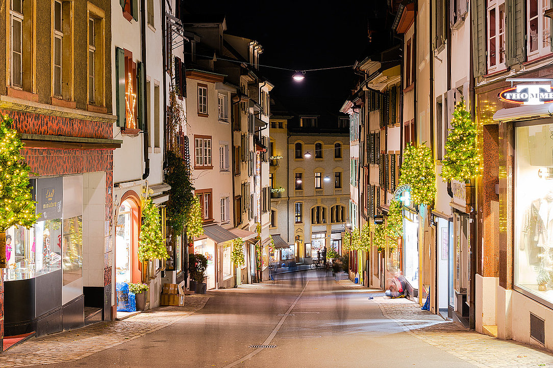 Doch die Weihnachtsstadt Basel will auch im Kleinen entdeckt werden! In den schmalen Altstadtgässlein, am Spalenberg, im Gerbergässlein, in der Spalenvorstadt, der St. Johanns-Vorstadt und der St. Alban-Vorstadt, oder in der Rheingasse, die sich als stimmungsvolle Adväntsgass im Glaibasel präsentiert! Halte die Augen offen und geniesse deinen Stadtspaziergang mit Blick nach oben – so wie du das auch machst, wenn du in deinen Ferien eine Stadt erkundest. Da schaust du nicht auf den Boden, sondern nimmst die Umgebung bewusst wahr. Es lohnt sich dasselbe auch in deiner eigenen Stadt zu tun. In der Adventszeit strahlen zahlreiche Ecken, Gebäude und Geschäfte einen besonderen Charme aus, dem auch du erliegen wirst!