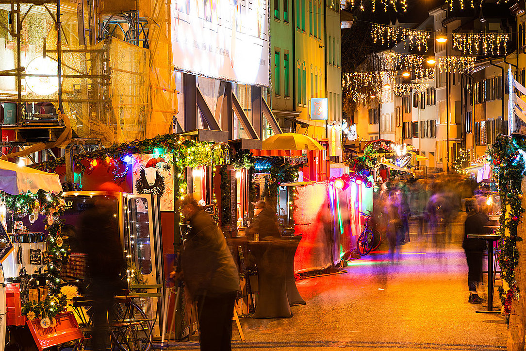 Erkunde deine Stadt, als ob du hier in den Ferien wärst und entdecke das Glitzern und Funkeln, die wunderschön dekorierten Weihnachtsbäume, Schaufenster und Fassaden, sowohl in den schmalen Gässlein der Altstadt, als auch auf den grossen Plätzen und Strassen – den Weihnachtszauber findest du überall!
