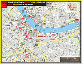 31 Restaurants und Geschäfte stellen Besucherinnen und Besucher von Basels Innenstadt ab sofort ihre Toiletten zur Verfügung – kostenlos und ohne Konsumverpflichtung. Aufkleber am Eingang der teilnehmenden Betriebe, aber auch Flyer, App und Webseiten zeigen, wo sich die „netten Toiletten“ befinden. Als Dank für die Öffnung ihrer WC-Anlagen erhalten die Betriebe – neben dem hoffentlich einen oder anderen neuen Gast – jährlich 2'500 Franken Entschädigung vom Kanton Basel-Stadt.